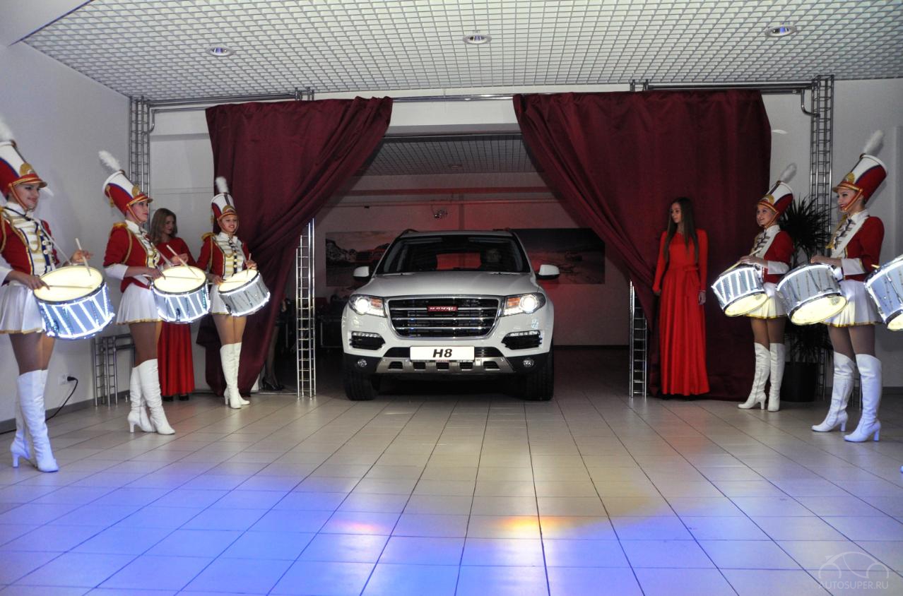 Также на открытии прошла презентация абсолютно нового кроссовера H8. Его появлению предшествовали неотразимые девушки-барабанщицы, показавшие яркое и громкое шоу. Первые машины, поступившие в Россию, оснащаются двухлитровым 218-сильным турбомотором, комплектуемым шестидиапазонной автоматической трансмиссией. Цена начальной версии автомобиля равна 2 049 900 рублей, а модификация Elite Technic обойдётся покупателям в 2 099 900 рублей. В базовой комплектации кроссовер оснащается передними креслами с подогревом и электроприводом зеркал, а также трёхзонным климат-контролем, подогревом лобового стекла, мультимедийной системой с сенсорным экраном, акустической системой Infinity с десятью динамиками и сабвуфером, панорамным люком, передними и задними парктрониками, фронтальными и передними подушками, системой адаптивного освещения, круиз-контролем и даже ассистентами при спуске, подъёме и пробуксовке.