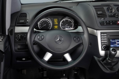 В базе на двигатели V6 устанавливается автомат, а на двигатель объемом 2,0 - только «механика». Правда, и для этого мотора автомат доступен, но уже в качестве опции. Появится на Viano и система BlueEFFICIENCY - комплекс оборудования, позволяющего повысить экономичность и экологичность.