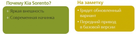 Еще не так давно, до появления на рынке огромного Kia Mohave, кроссовер Sorento являлся флагманской моделью производителя в России. И вот-вот к нам должны прибыть автомобили 2013 модельного года. Пока же есть хорошая возможность приобрести дорестайлинговый вариант по более выгодной цене. Автомобиль выполнен в фирменной стилистике Kia и оснащен на выбор бензиновым или дизельным двигателем. Причем теперь он полностью избавлен от устаревших 5-скоростных трансмиссий и оснащается 6-диапазонными «механикой» или «автоматом». А передний привод предлагается только в базе. Кроссовер и без того мог похвастать неплохой управляемостью, комфортом, безопасностью, экономичностью и экологичностью, а теперь нам обещают еще более впечатляющие характеристики. Расход топлива новинки и вовсе должен стать одним из самых низких в сегменте.