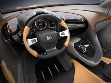 Зализанные формы корпуса, необычные фары придали экстерьеру Cross GT футуристичный облик, при этом автомобиль не потерял обретённого в последние годы фирменного стиля KIA. Особо привлекает внимание крыша машины. Она выполнена в компромиссном варианте между глухой металлической и панорамной стеклянной.