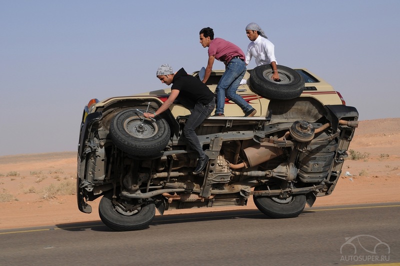 В Саудовской Аравии, по всей видимости, местным жителям крайне не хватает острых ощущений. Молодые люди все время придумывают новые способы пощекотать себе и окружающим нервы. На этот раз речь пойдет о sidewalk skiing (боковом скольжении). Автомобиль разгоняют и ставят на два колеса, пассажиры вылезают во время движения и скручивают два остальных, не участвующих в движении колеса.