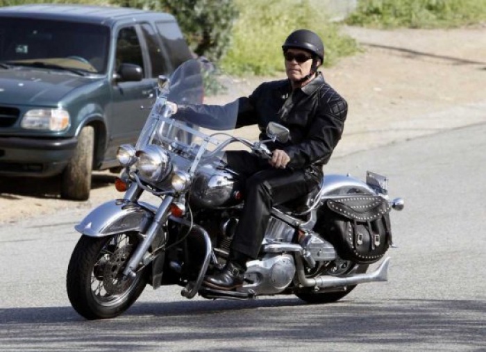 Помимо автомобилей экс-губернатор Калифорнии уделяет немало внимания и мотоциклам. Его часто видят на любимом Harley-Davidson. Кстати, на нём актёр дважды попадал в аварии, причём оба раза без прав. При этом выяснилось, что на тот момент актёр уже 10 лет «нелегально» ездил на мотоциклах: свои права категории A (управление мотоциклом) Шварцнеггер получил ещё в Австрии, но при смене гражданства они потеряли свою силу (к слову категории B и C Арни получал уже в США, их этот казус не коснулся). Пришлось Арнольду почти в 60 лет заново сдавать на вождение мотоцикла.