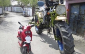 Житель китайской провинции Синьцзян 30-летний Абулайон нашел оригинальный способ выделиться. Этнический уйгур собрал для себя 4,3-метровый трактор-мотоцикл. Больше года потребовалось Абулайону для того, чтобы создать необычного «гиганта». Все материалы и запчасти для сборки китайский житель «черпал» на ближайших складах и свалках металлолома.