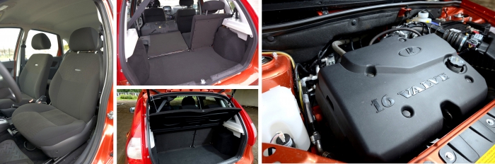 Хотя вариант с автоматической коробкой передач в комплектации «Норма» возможен, у нас на тесте оказалась машина с обычной механической коробкой передач, которая работает в паре с восьмиклапанным мотором мощностью 87 лошадиных сил. Что нисколько не мешает ей демонстрировать проворность на уровне топовой LADA Kalina «Люкс». Все перестроения, ускорения и торможения даются машине без видимых усилий. На высоком уровне оказалась и управляемость автомобиля. Крены кузова если и есть, то минимальные. А мягкие настройки подвески позволяют ходом форсировать разнокалиберные дорожные препятствия без каких-либо опасений за узлы и без дискомфорта для пассажиров.