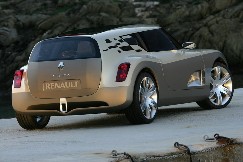 Весь вид Renault Altica - низкий силуэт, длинный капот, "хищные" фары, выступающие крылья - свидетельствует о спортивной динамике модели, а панорамное лобовое и заднее стекла подчеркивают обтекаемую аэродинамическую форму автомобиля.