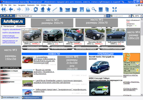 - материалы о новых и подержанных автомобилях, представленных на российском рынке.