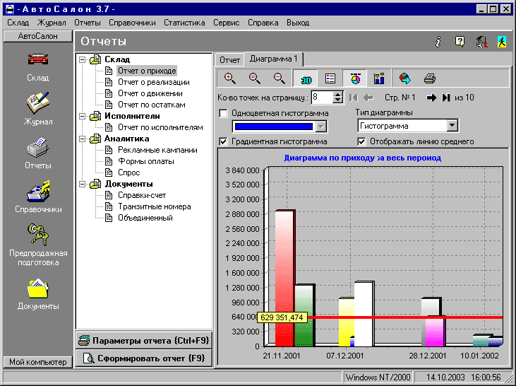 - Статистика с возможностью формирования диаграмм: