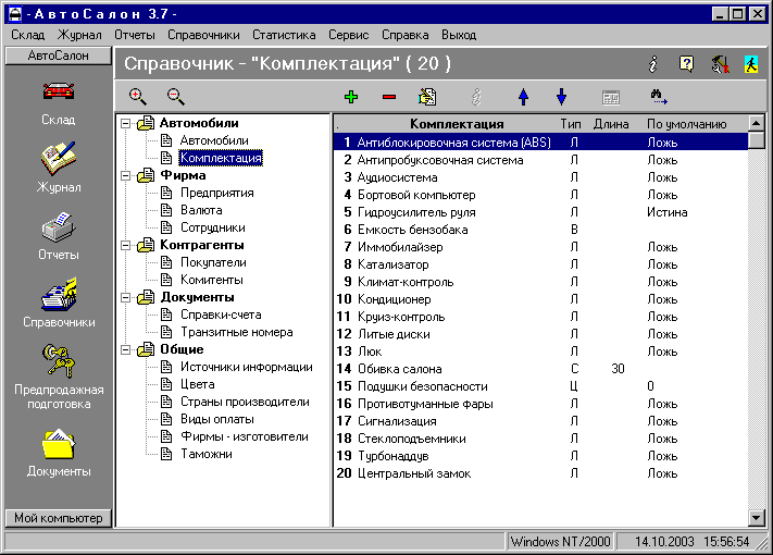 - Гибкая настройка списка комплектации автомобилей. Список является динамическим, т.е. Вы можете его сами настроить как требуется;