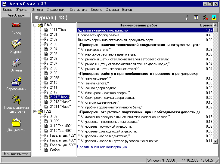 - Описание работ и нормы-времени на Предпродажную подготовку по отечественным автомобилям.