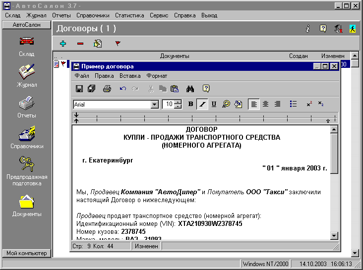 Система учета автомобилей и оформления документов.