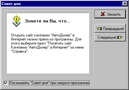 - Подробная Справочная система и Советы дня.