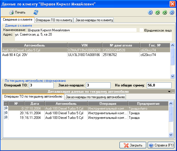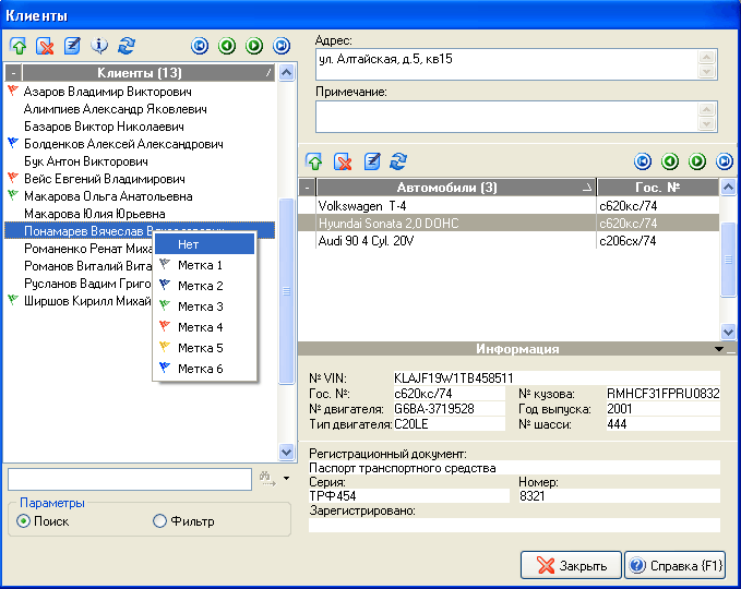 - Справочник по клиентам с возможностью устанавливать неограниченное количество автомобилей для каждого клиента;