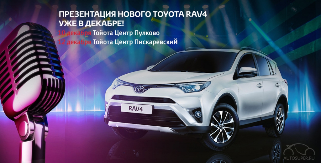 10 декабря 2015 года в Тойота Центре Пулково и 12 декабря 2015 года в Тойота Центре Пискаревский состоится презентация Нового Toyota RAV4!