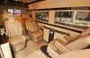 Внутри фургона комфортабельные кожаные кресла, холодильник, встроенные шкафы для вещей, рабочая зона, паркетные полы из твердых пород дерева. Электронная начинка для работы и развлечений так же потрясает: два 32-дюймовых ж/к телевизора, спутниковое телевидение, Wi-Fi, 3G, цветные принтеры и система конференц-связи.