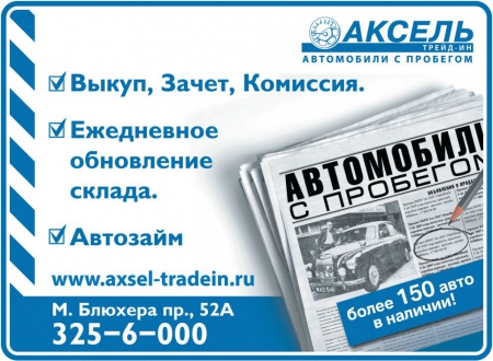 В начале наступившего года группа компаний «Аксель», решила открыть отдельную площадку по реализации автомобилей с пробегом на пр. Маршала Блюхера. Так на свет появилось обособленное подразделение - «Аксель Трейд-Ин». О новом для компании направлении деятельности подробнее рассказывает руководитель отдела продаж автомобилей с пробегом «Аксель-Сити» Александр Карпов.